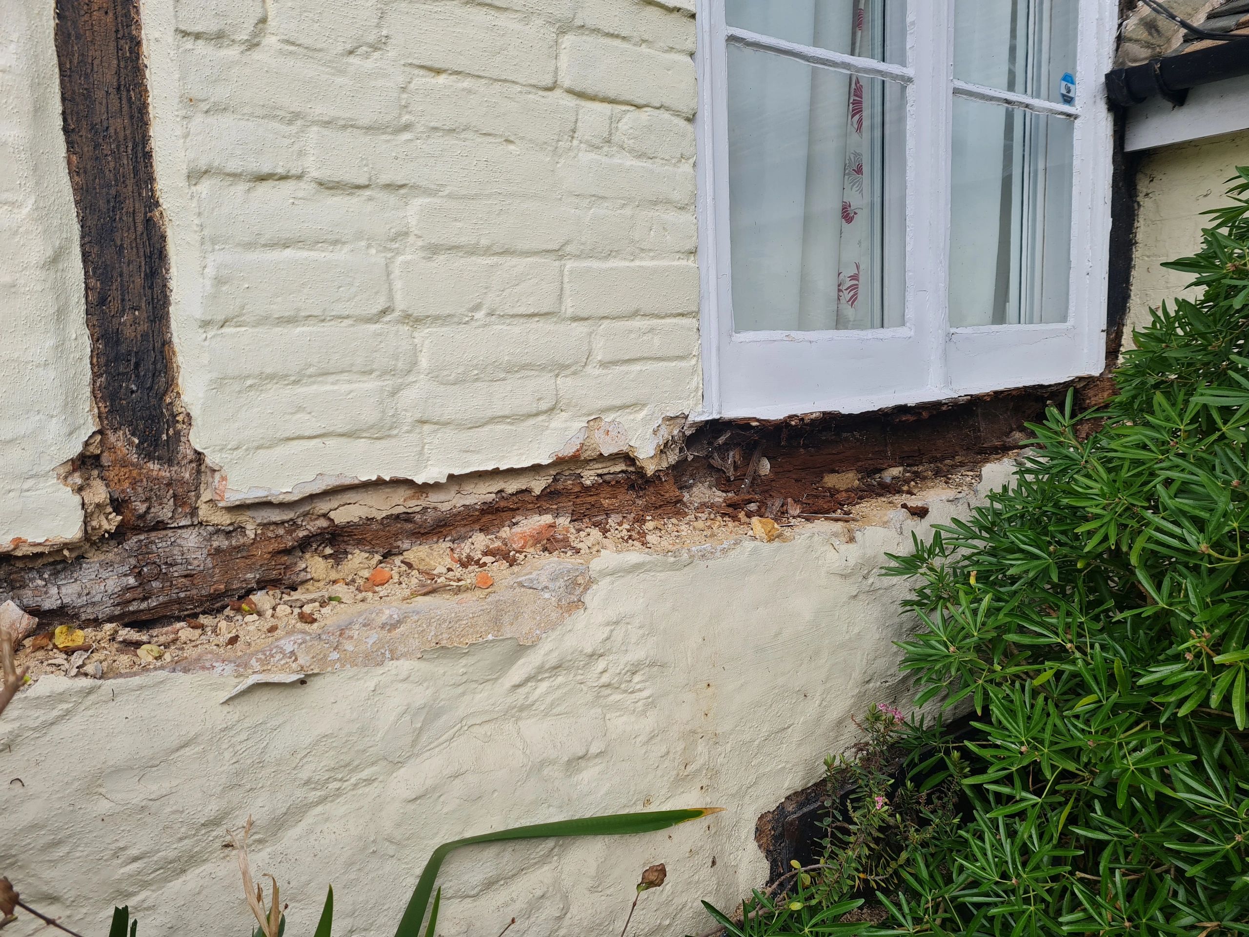 The timber frame had suffered the worst decay wherever in contact with impermeable cement repairs